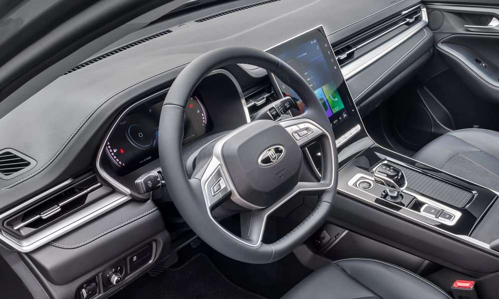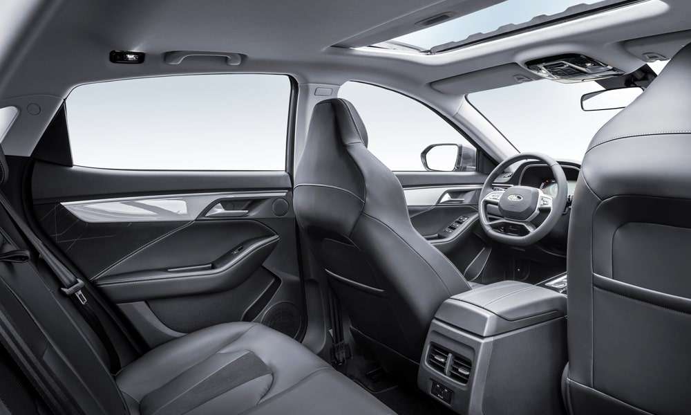 - Кожаная отделка сидений черного цвета с декоративной прострочкой, перфорацией и декоративными вставками